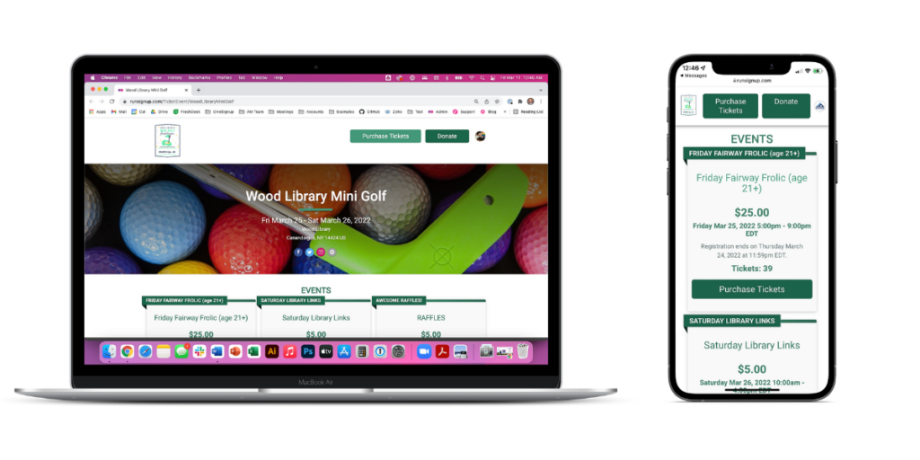 GiveSignup events all come with a free, customizable event website. Unlike other ticketing and registration platforms, your GiveSignup event website can be branded for your organization (not ours), never include ads from other events (or anything else), and can include multiple pages with a full website menu.