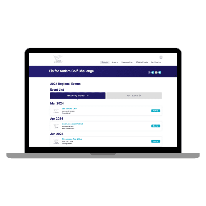 When an organization puts on a number of events in a variety of locations, it can sometimes be difficult to keep all their current, and potential, supporters aware. The Els Foundation smartly utilized our Organization Page feature to create a page where people can see all of their upcoming events in one place.